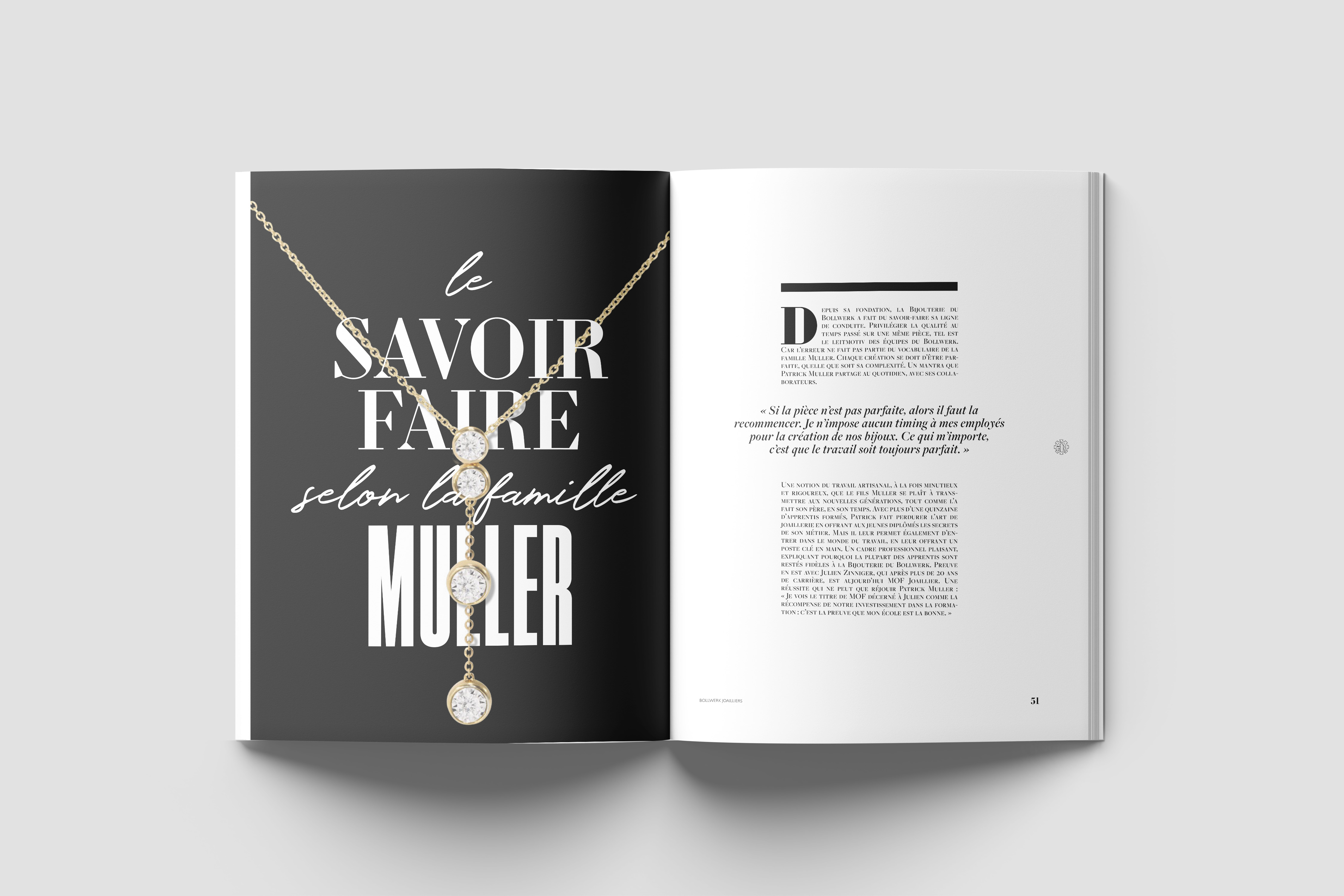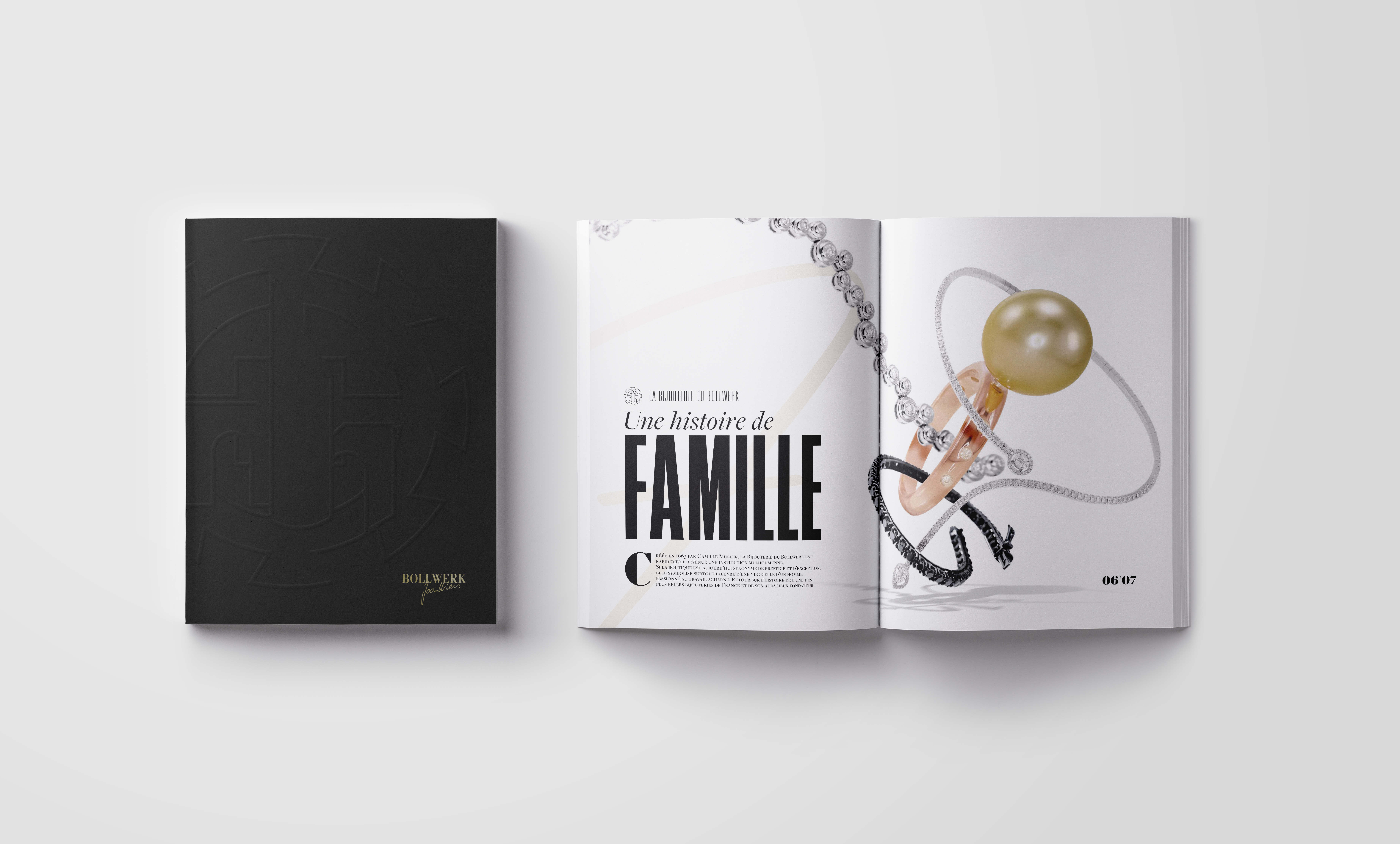 Direction artistique et création du magazine n°01 de la joaillerie suisse Bollwerk Joaillerie.