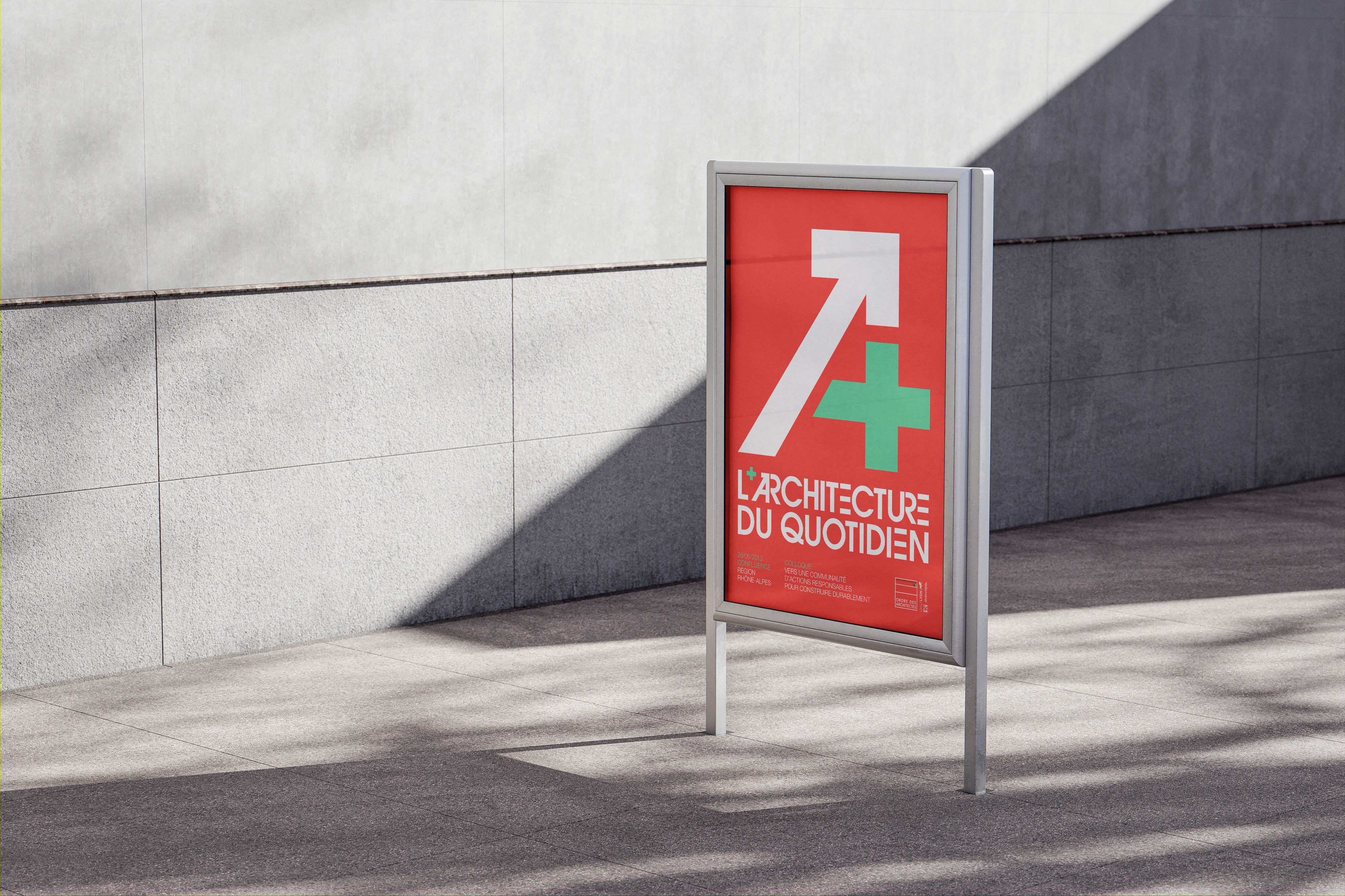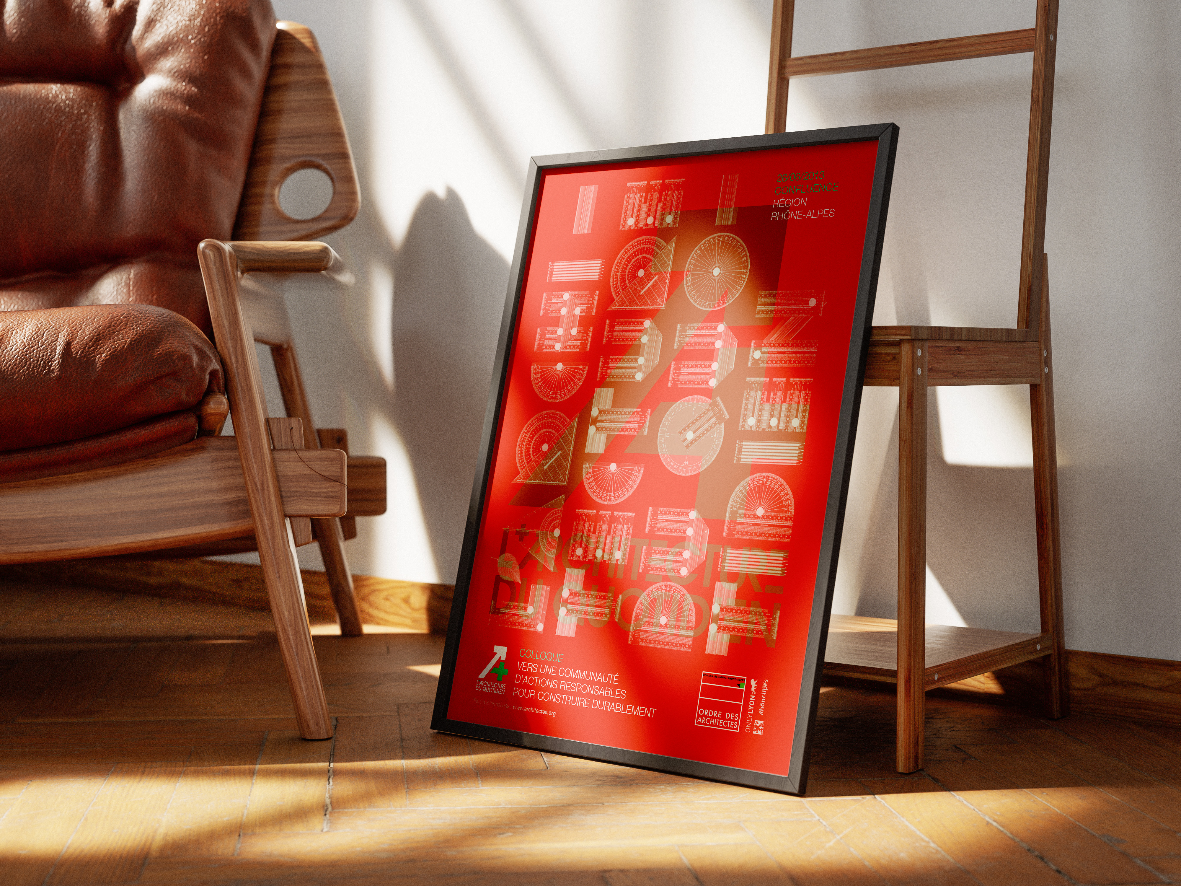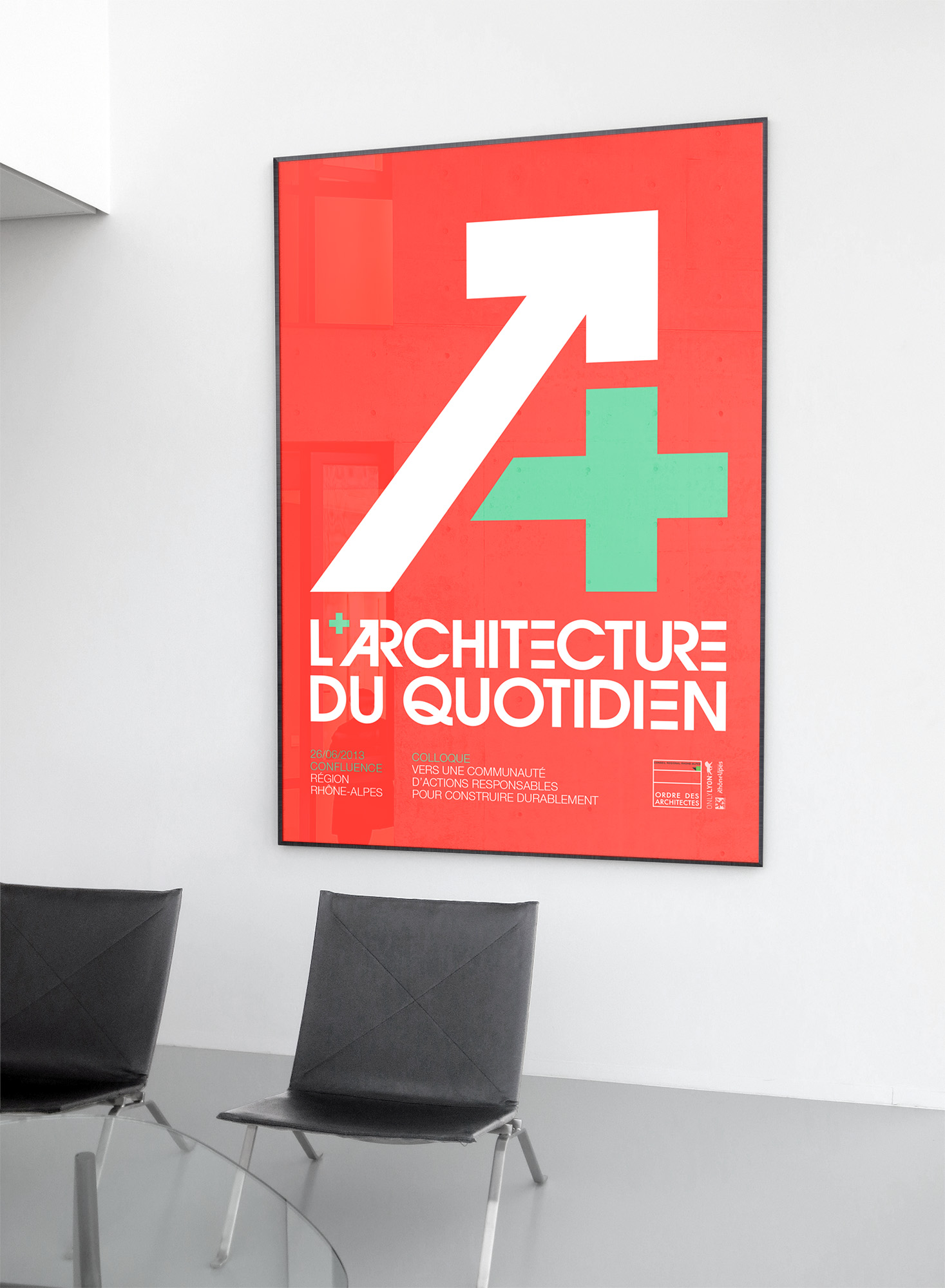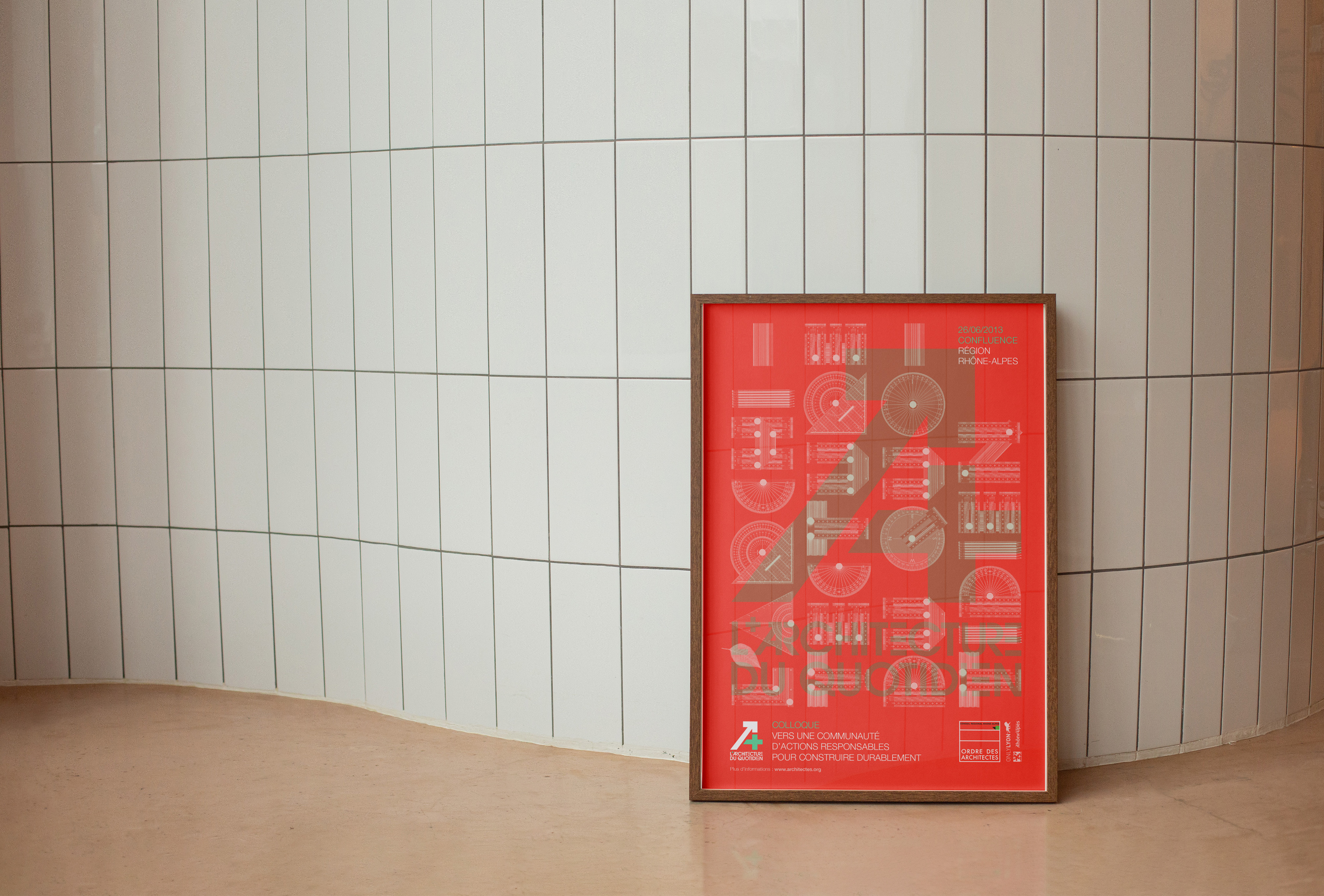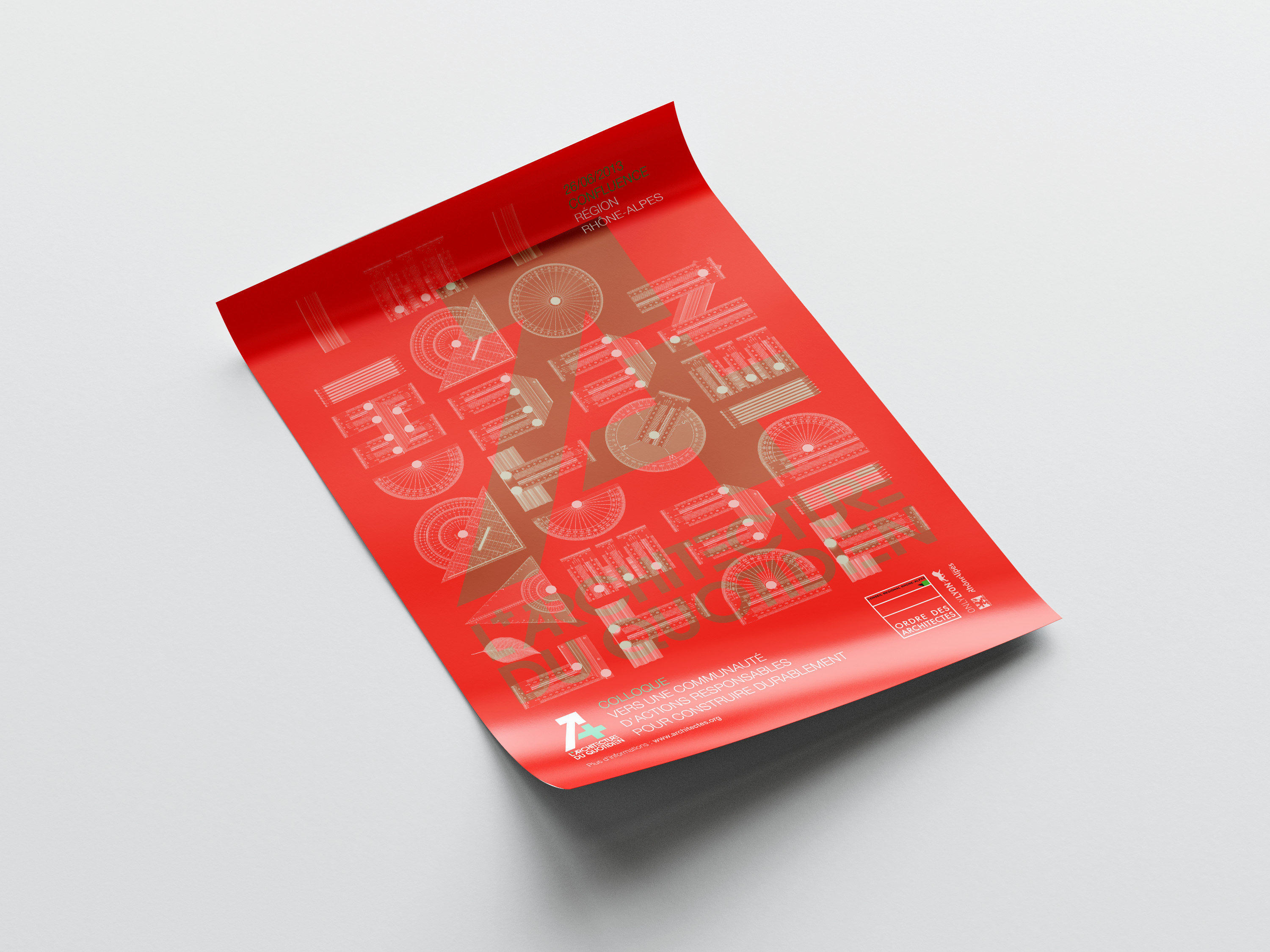 Proposition d’identité graphique et de visuels dans le cadre d’un colloque sur l’architecture et le développement durable organisé par l’ordre des architectes au sein du quartier Confluence à Lyon.