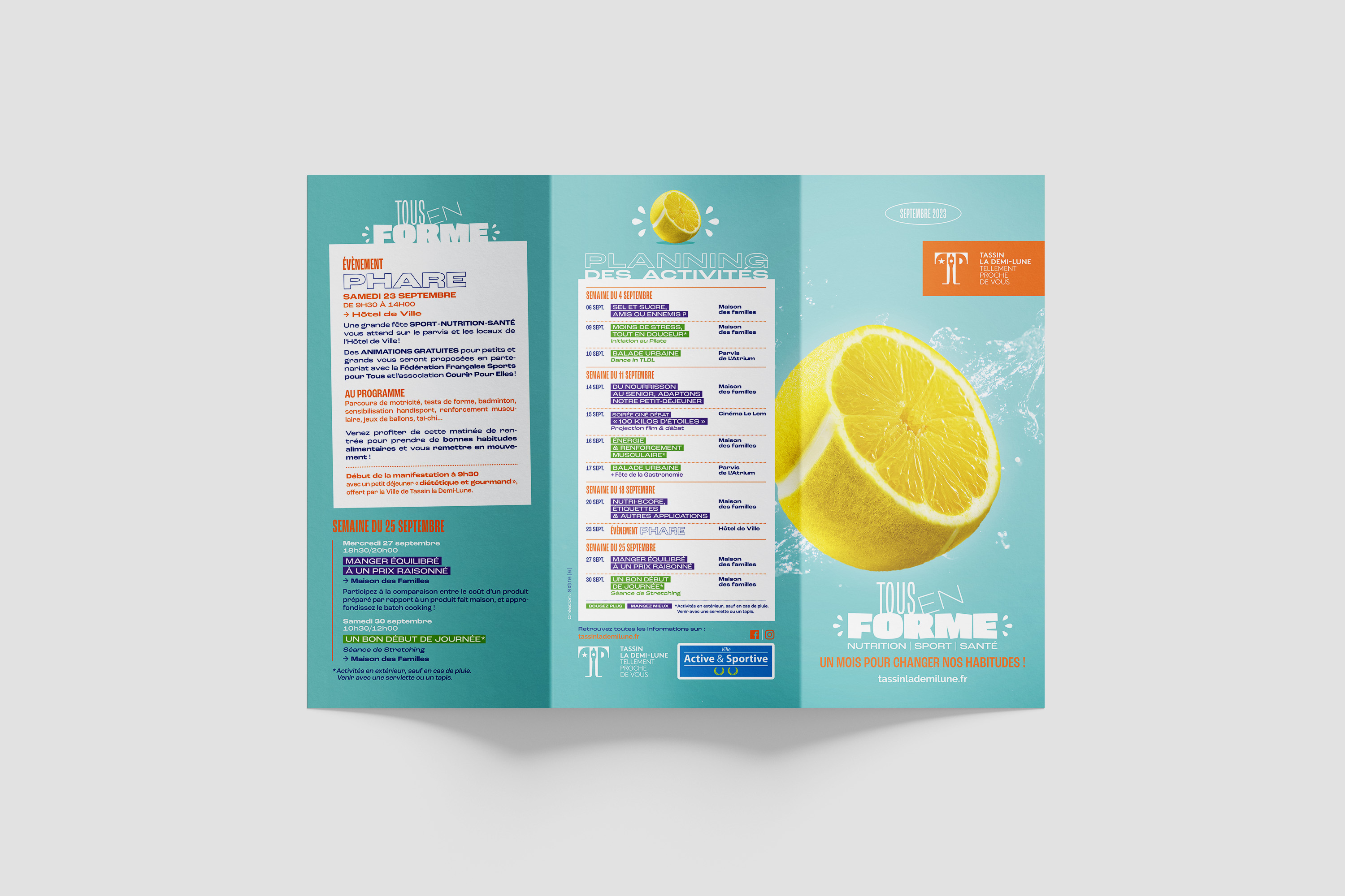 tous en forme Identité graphique— tassin-la-demi-luneagence sixtine a — 2023— tous en forme — Création de l’identité graphique et de l’ensemble des supports de communication pour l’évènement santé annuel de la ville de Tassin-la-demi-lune.⇣ communication⇣ goodiestopclose